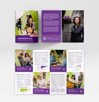 Zur Einführung und Bekanntmachung des neuen Formats entsteht ein kompaktes Printmailing. Es teasert zentrale Kernthemen des Jahresrückblicks an und verweist über QR-Codes direkt in die entsprechenden Kapitel des digitalen Jahresberichts. So erleben die Zielgruppen den Übergang von Print zu Digital nahtlos – vom ersten Impuls zur inhaltlichen Vertiefung.